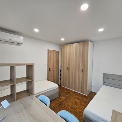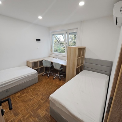 V LJ (MOSTE) na mirni in svetli lokaciji v neposredni bližini avtobusne postaje v bližini Fakultete za medicino, Zdravstvene fakultete in Fakultete za šport, oddamo na novo prenovljeno in opremljeno stanovanje v bloku za do 5 študentov/študentk z souporabo kuhinje, jedilnice in kopalnice. V stanovanju se že nahajajo 3 študentje. Oddamo dvoposteljno sobo za 375 €/osebo na mesec z vključenimi stroški za obdobje šolskega leta 2025/2026, vseljivo takoj, možnost subvencije. Možnost souporabe zaklenjene kolesarnice v bloku in brezplačnega parkirnega prostora v okolici bloka. Centralno gretje, hlajenje s klimatsko napravo (vsaka soba ima ločeno klimo), WI-FI, pralno-sušilni stroj, pomivalni stroj, mikrovalovna pečica, toaster, sesalec,... Najem se sklene za minimalno obdobje 10 mesecev. Pred vselitvijo je obvezna varščina v višini dveh najemnin in sklenitev pogodbe. Zainteresirani pišite na: branka.kleindienst@gmail.com