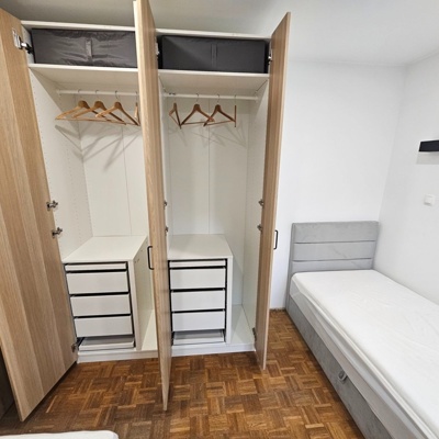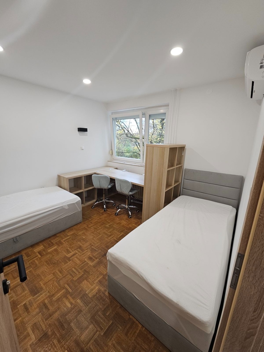 V LJ (MOSTE) na mirni in svetli lokaciji v neposredni bližini avtobusne postaje v bližini Fakultete za medicino, Zdravstvene fakultete in Fakultete za šport, oddamo na novo prenovljeno in opremljeno stanovanje v bloku za do 5 študentov/študentk z souporabo kuhinje, jedilnice in kopalnice. V stanovanju se že nahajajo 3 študentje. Oddamo dvoposteljno sobo za 375 €/osebo na mesec z vključenimi stroški za obdobje šolskega leta 2025/2026, vseljivo takoj, možnost subvencije. Možnost souporabe zaklenjene kolesarnice v bloku in brezplačnega parkirnega prostora v okolici bloka. Centralno gretje, hlajenje s klimatsko napravo (vsaka soba ima ločeno klimo), WI-FI, pralno-sušilni stroj, pomivalni stroj, mikrovalovna pečica, toaster, sesalec,... Najem se sklene za minimalno obdobje 10 mesecev. Pred vselitvijo je obvezna varščina v višini dveh najemnin in sklenitev pogodbe. Zainteresirani pišite na: branka.kleindienst@gmail.com