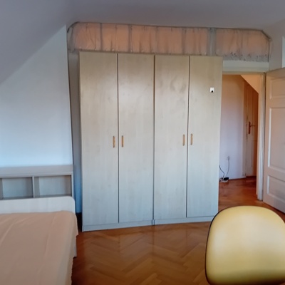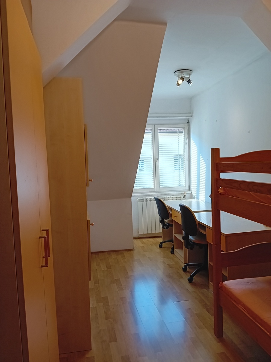 Oddam stanovanje v središču Ljubljane petim mirnim študentkam. Stanovanje ima dve dvoposteljni sobi: 21.36 m2, 12,2 m2 in enoposteljno enoposteljno sobo 10,7 m2. Skupna cena najema je 400 EUR mesečno + stroški.
