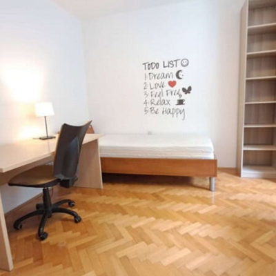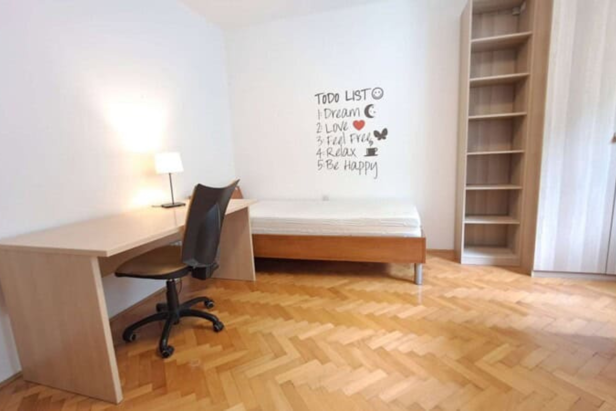 Soba je del dvosobnega stanovanja, kjer bivajo še trije študentje. Skupna kuhinja, wc in kopalnica. Obstaja možnost najema dvoposteljne sobe samo za eno osebo - v tem primeru je cena sobe za 20 odstotkov nižja od cene celotne sobe. Najem možen od februarja 2026.