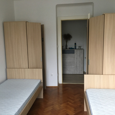 Dvoposteljna soba v 4 sobnem stanovanju z dvema kopalnicama in kuhinjo .Lokacija hiše je zraven fakultete za matematiko in fiziko in Instituta Jožef Štefan – IJS. Brezžični wi-fi, kolesarnica, pralnica, kratkotrajno parkiranje, vrt so na voljo za skupno uporabo stanovalcev. V bližini so prav tako sprehajalne poti, športni tereni in trgovine. Tudi center mesta je le nekaj minut stran s kolesom, pa tudi peš ali z avtobusom se da enostavno do tja.