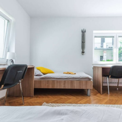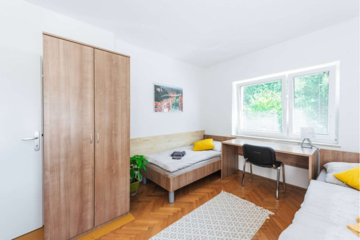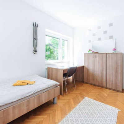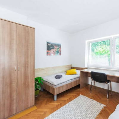 Študentske sobe se nahajajo na mirni lokaciji v Bežigradu. Bližina šestih fakultet: Pedagoške, Ekonomske, Upravne, Fakultete za družbene vede, Fakultete za Dizajn in Fakultete za podjetništvo - GEA College. Do samega centra mesta pa smo oddaljeni manj kot 15 minut z busom ali kolesom. Tvoja soba je del 2-sobnega stanovanja, v katerem bivajo še 3je, s katerimi si deliš kuhinjo, 1 wc in 1 kopalnico. Obstaja možnost najetja dvoposteljne sobe samo za eno osebo - v tem primeru je cena sobe za 20 odstotkov nižja od cene za dve osebi. Na naši spletni strani https://studentske-sobe.si/ lahko izveš več o postopku rezervacije, vselitvi in hišnem redu.