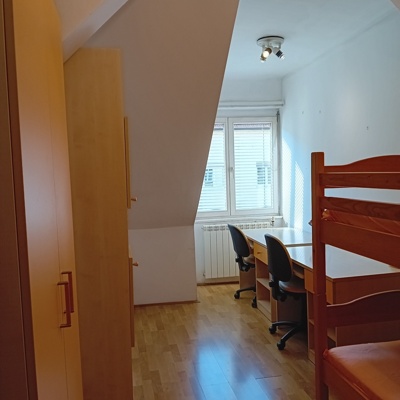 Oddam stanovanje v središču Ljubljane petim mirnim študentkam. Stanovanje ima dve dvoposteljni sobi: 21.36 m2, 12,2 m2 in enoposteljno enoposteljno sobo 10,7 m2. Skupna cena najema je 400 EUR mesečno + stroški.