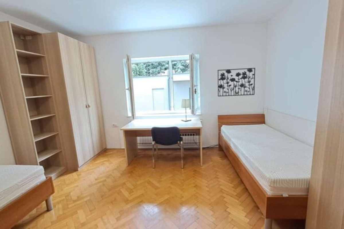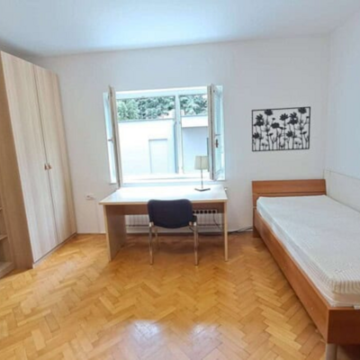 Soba je del dvosobnega stanovanja, kjer bivajo še trije študentje. Skupna kuhinja, wc in kopalnica. Obstaja možnost najema dvoposteljne sobe samo za eno osebo - v tem primeru je cena sobe za 20 odstotkov nižja od cene celotne sobe. Najem možen od februarja 2026.