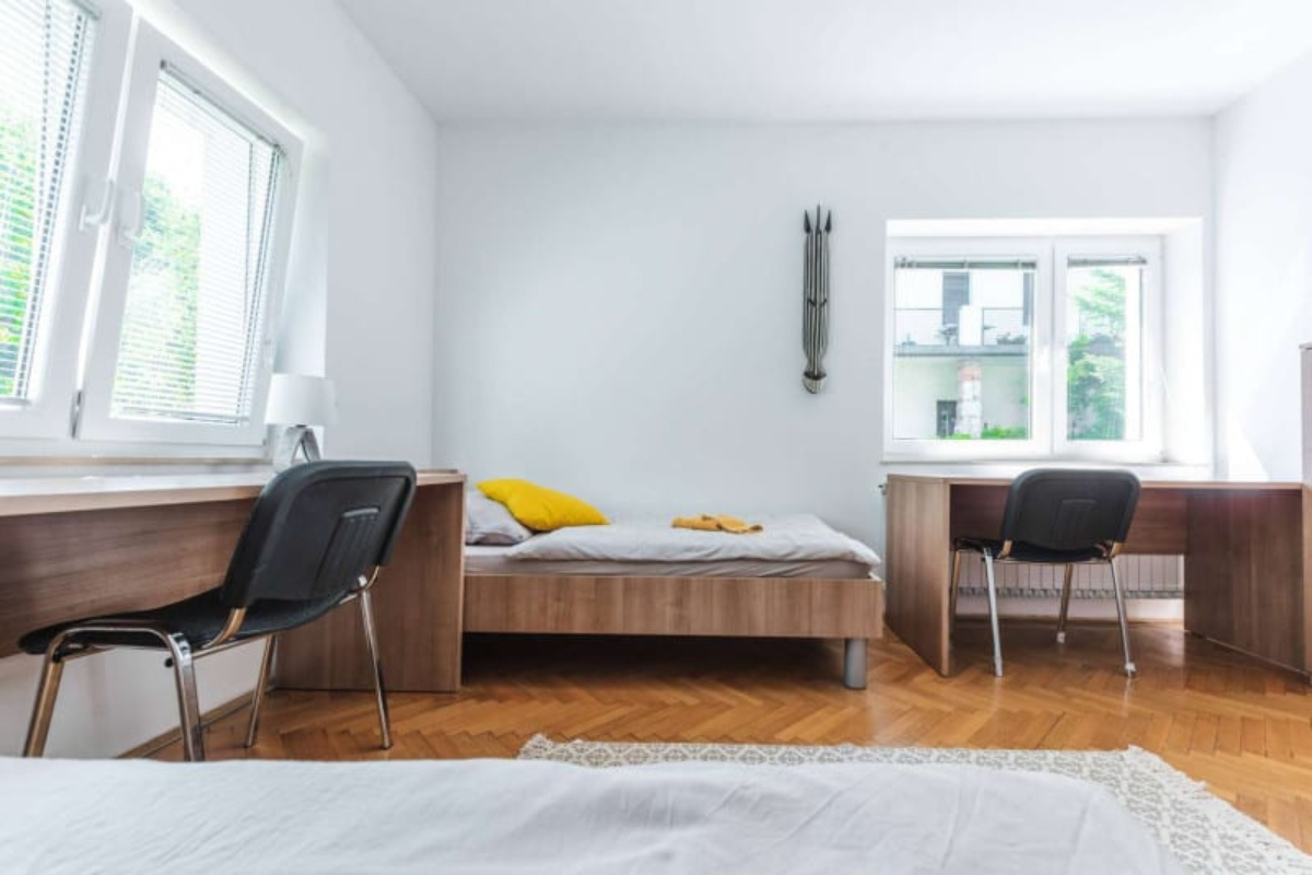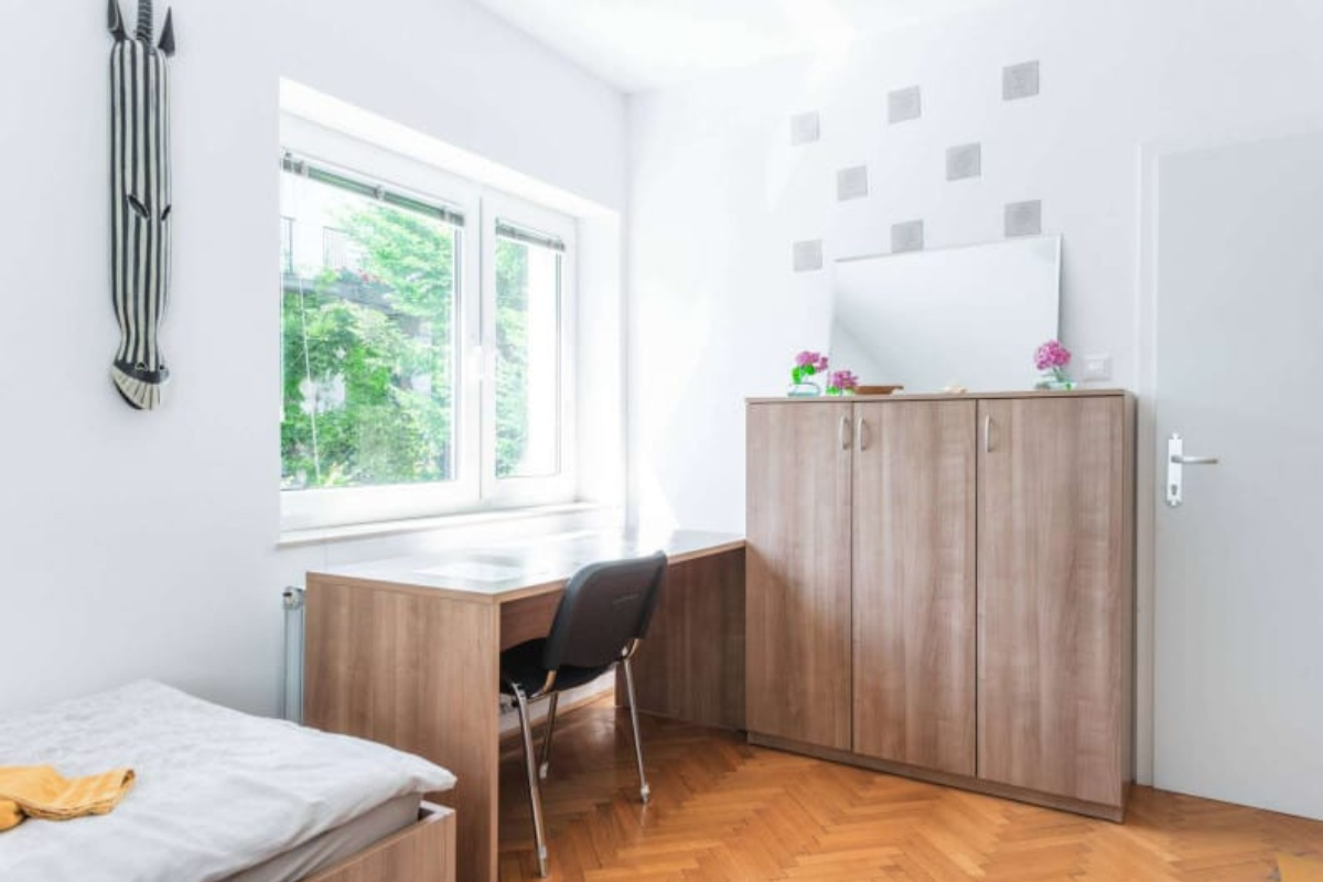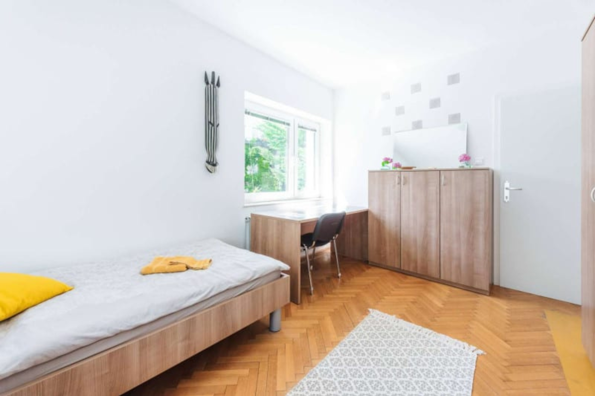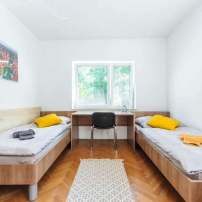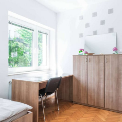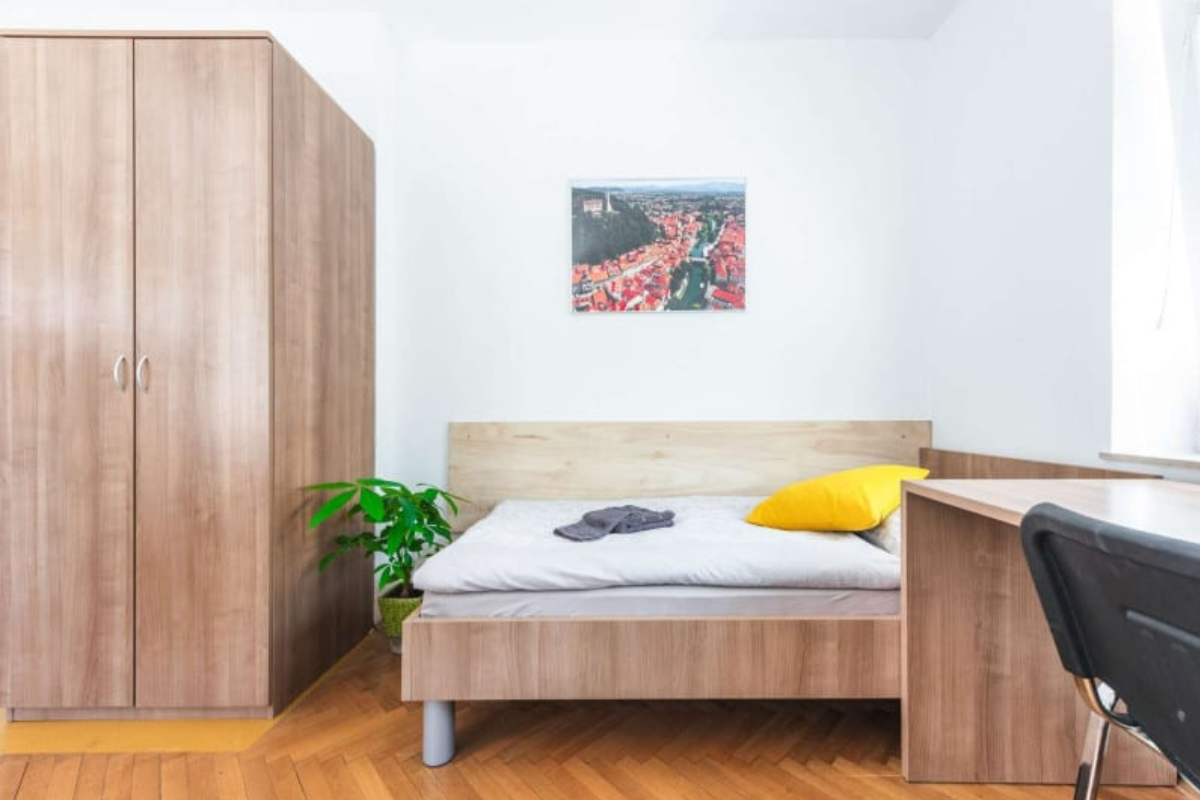 Študentske sobe se nahajajo na mirni lokaciji v Bežigradu. Bližina šestih fakultet: Pedagoške, Ekonomske, Upravne, Fakultete za družbene vede, Fakultete za Dizajn in Fakultete za podjetništvo - GEA College. Do samega centra mesta pa smo oddaljeni manj kot 15 minut z busom ali kolesom. Tvoja soba je del 2-sobnega stanovanja, v katerem bivajo še 3je, s katerimi si deliš kuhinjo, 1 wc in 1 kopalnico. Obstaja možnost najetja dvoposteljne sobe samo za eno osebo - v tem primeru je cena sobe za 20 odstotkov nižja od cene za dve osebi. Na naši spletni strani https://studentske-sobe.si/ lahko izveš več o postopku rezervacije, vselitvi in hišnem redu.